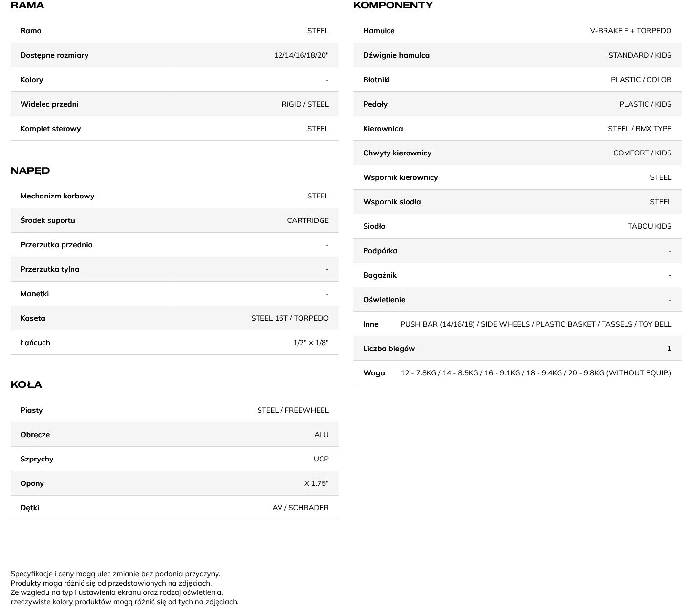 - Rozmiar koła 20''